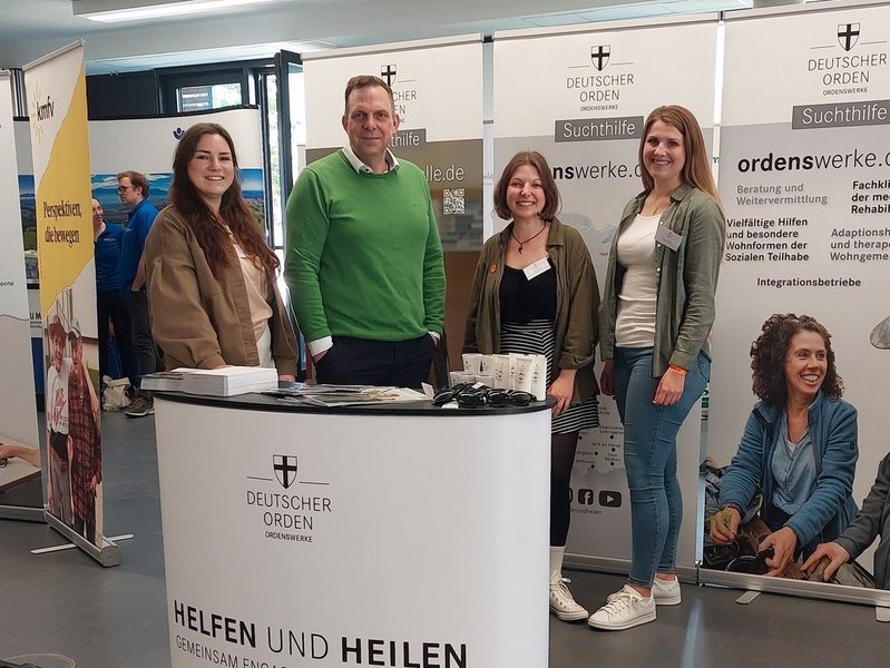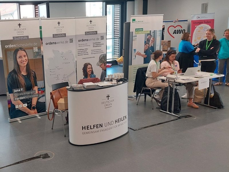 Premiere: Zum ersten Mal präsentierten sich die Ordenswerke des Deutschen Ordens als einer der größten Suchthilfe-Träger Deutschlands mit einem eigenen Messestand auf dem „Career Day“ der Katholischen Stiftungshochschule München.